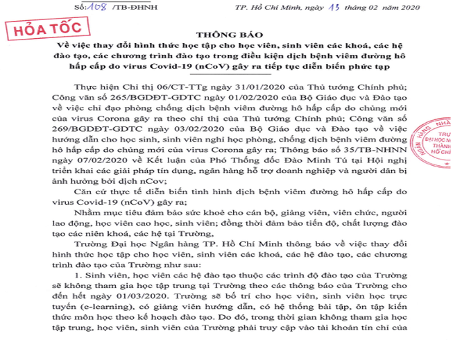 Thông báo hỏa tốc của trường ĐH Ngân hàng TP.HCM