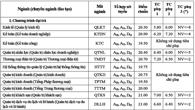 Điểm chuẩn thấp nhất của Đại học Thương mại là 19,5 Theo VnExpress 07/08/2018 - 10:30 (GMT+7) Ngành Marketing thương mại lấy điểm trúng tuyển cao nhất là 21,55. Các ngành như Kế toán, Tài chính - Ngân hàng (Tài chính công) lấy thấp nhất. Chia sẻ Bài viếtTheo VnExpress #Hashtag #ĐẠI HỌC THƯƠNG MẠI #ĐIỂM CHUẨN ĐẠI HỌC 2018
