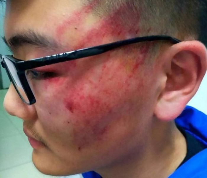 Nam sinh bị giáo viên tát đỏ mặt, in hằn dấu tay.