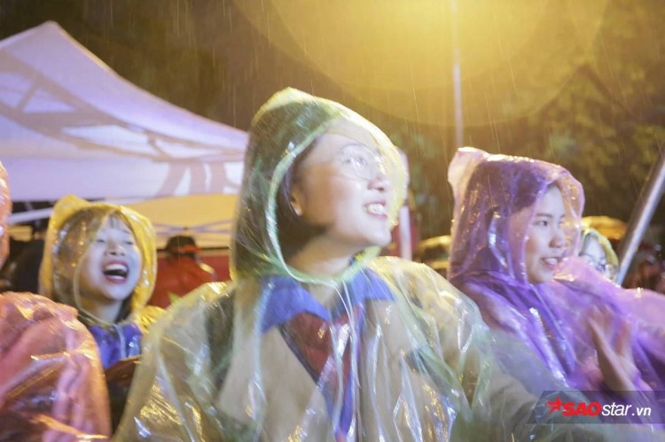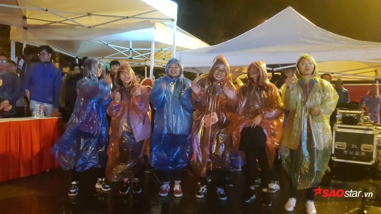 Mặc cho trời mưa tầm tã, các nữ cổ động viên vẫn nở nụ cười rạng ngời.