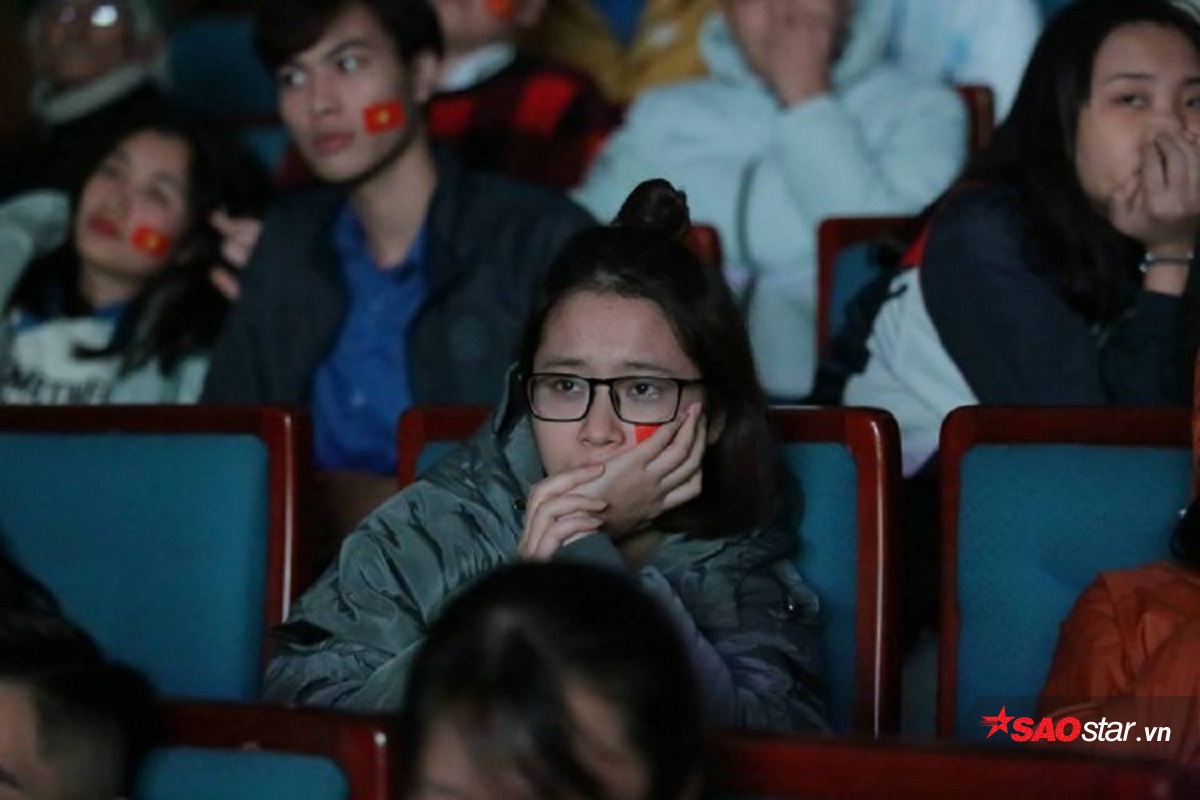 Cổ động viên chăm chú theo dõi những pha bóng đe dọa khung thành thủ môn Văn Lâm