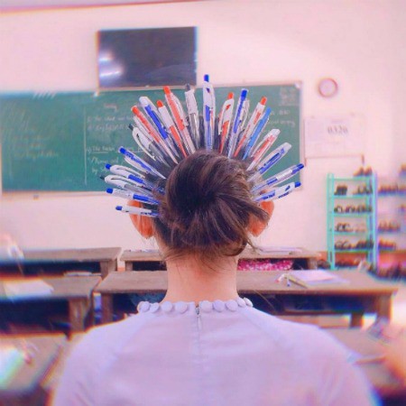 Những bộ phim khai thác đề tài thâm cung nội chiến như Diên Hy Công Lược hay Hậu Cung Như Ý Truyện sau khi phát sóng đã tạo nên những cơn sốt và trào lưu chưa từng có, được giới trẻ Việt nhiệt tình hưởng ứng. Một trong số đó chính là việc cắm tất cả bút, thước, kéo, compa… lên đầu để tạo thành trâm cài với hy vọng sẽ trở nên xinh đẹp “lộng lẫy” như các nhân vật trong phim.