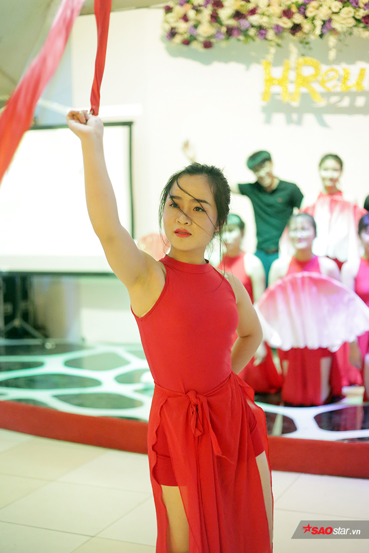 Khi trình diễn bài múa trên nền nhạc ca khúc Lạc trôi, nữ sinh Nguyễn Thu Hường lớp Quản trị Nhân lực 58B gây thương nhớ vì gương mặt sáng, thần thái sân khấu rạng ngời tại đêm prom Chia tay khóa cuối.