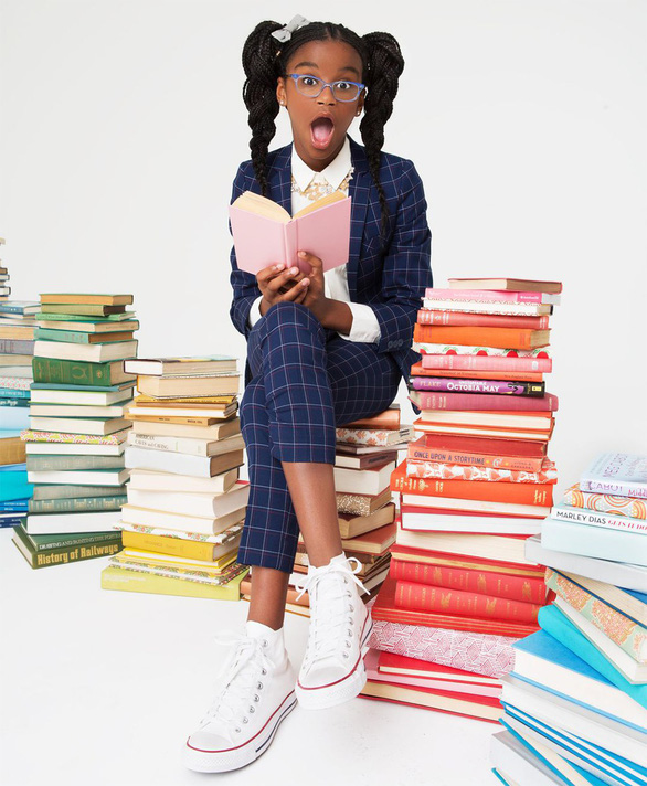 Em Marley Dias bên những cuốn sách mong muốn của mình - Ảnh: SMITHSONIAN MAGAZINE