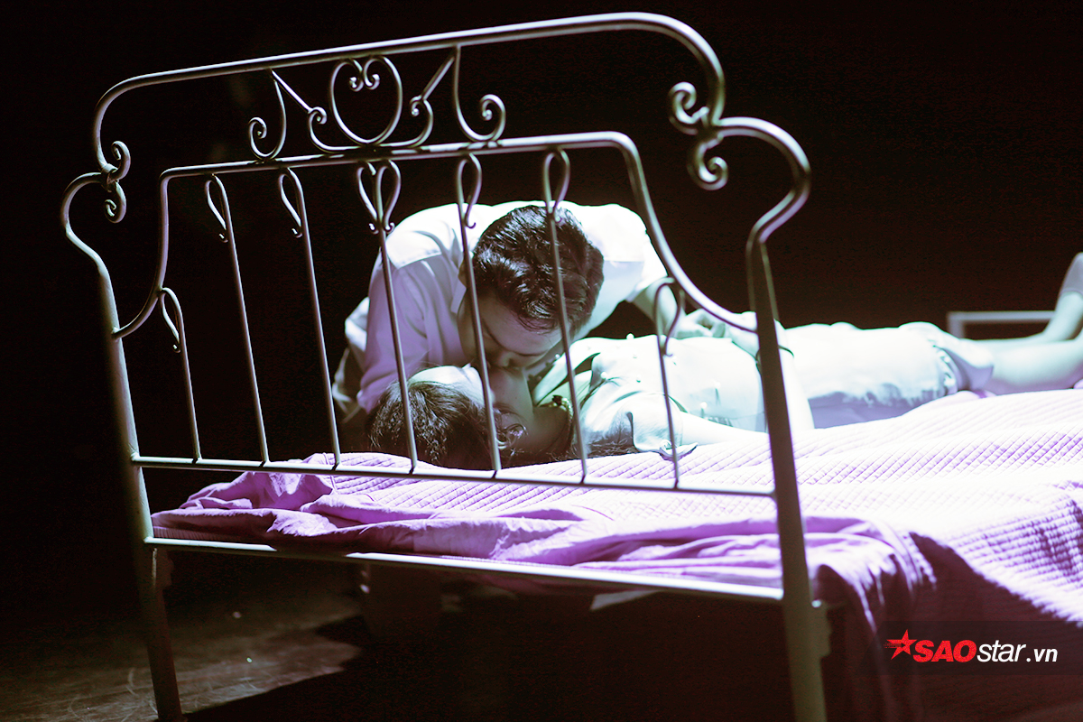 Nụ hôn táo bạo trên sân khấu nhạc kịch của 2 diễn viên còn đang tuổi học sinh Lê Thái Minh và Nguyễn Phương Anh khiến khán giả có mặt không khỏi ngỡ ngàng và phấn khích