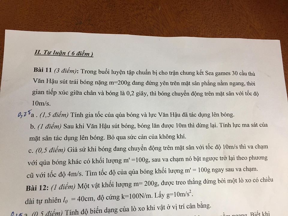 Nội dung đề thi học kỳ môn Vật lý có “liên quan” đến cầu thủ Đoàn Văn Hậu được các cô cậu học sinh thay nhau chia sẻ. Ảnh: Hải Ngọc/Group Trường Người Ta