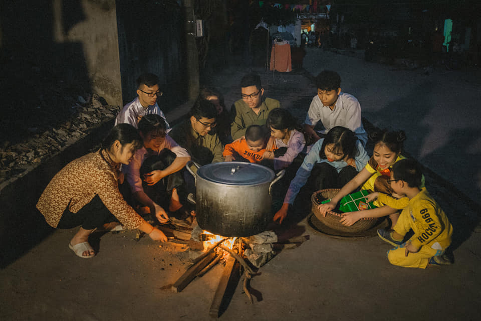 Ôi, cả xóm cùng thâu đêm trông nồi bánh chưng mới vui sao