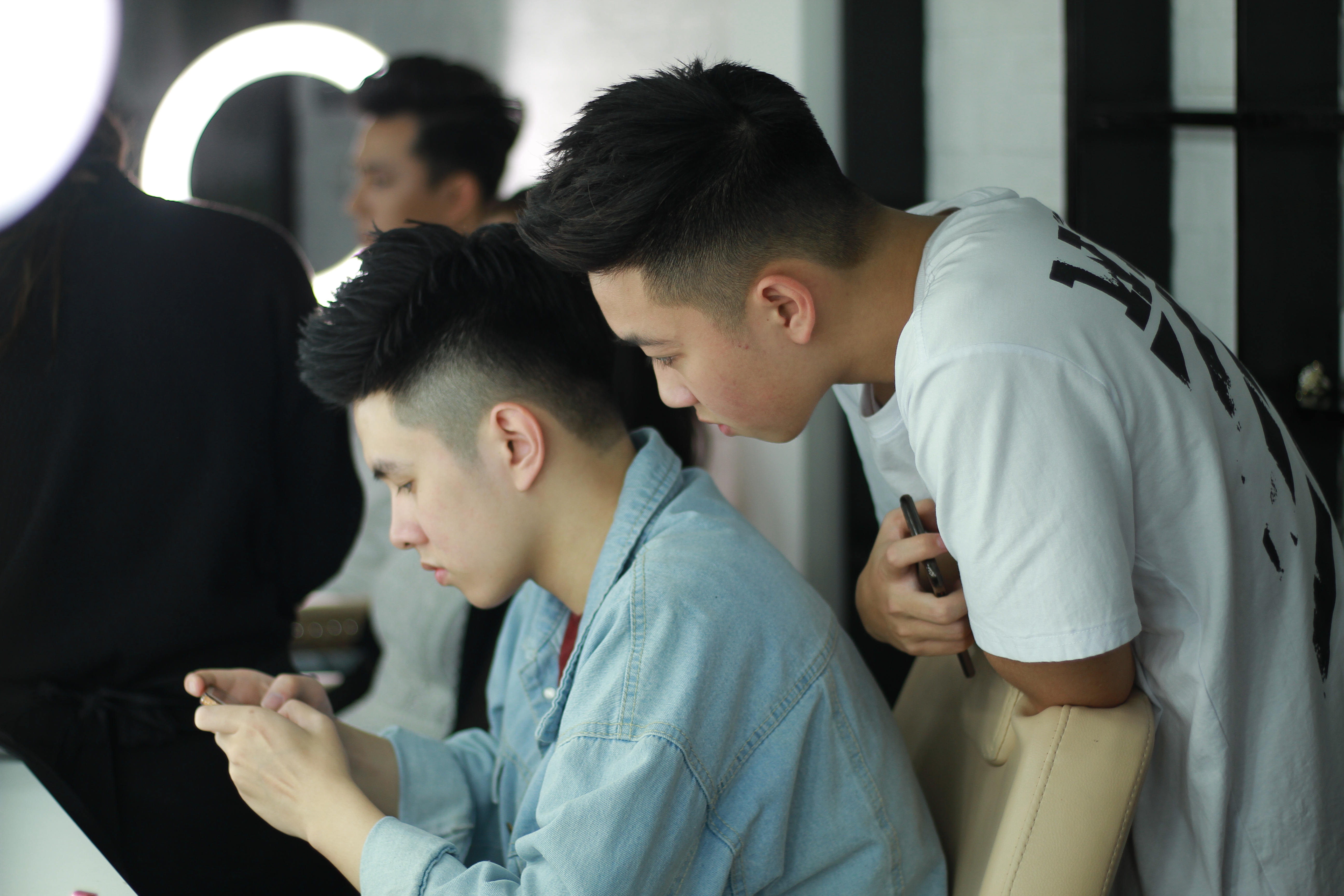 Các bạn nam cũng lựa chọn trang phục rất tỉ mỉ, kỹ lưỡng.