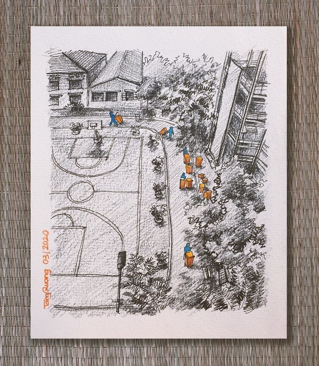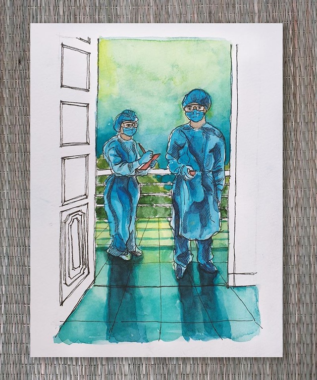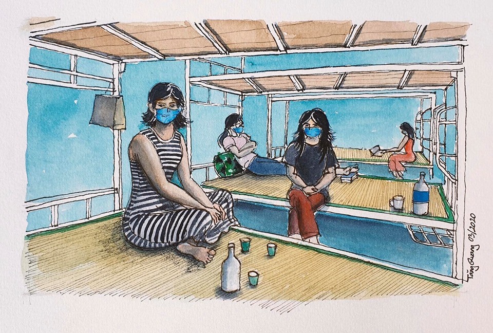 Những bạn nữ trong khu cách ly cũng xuất hiện trong bức họa của Tăng Quang