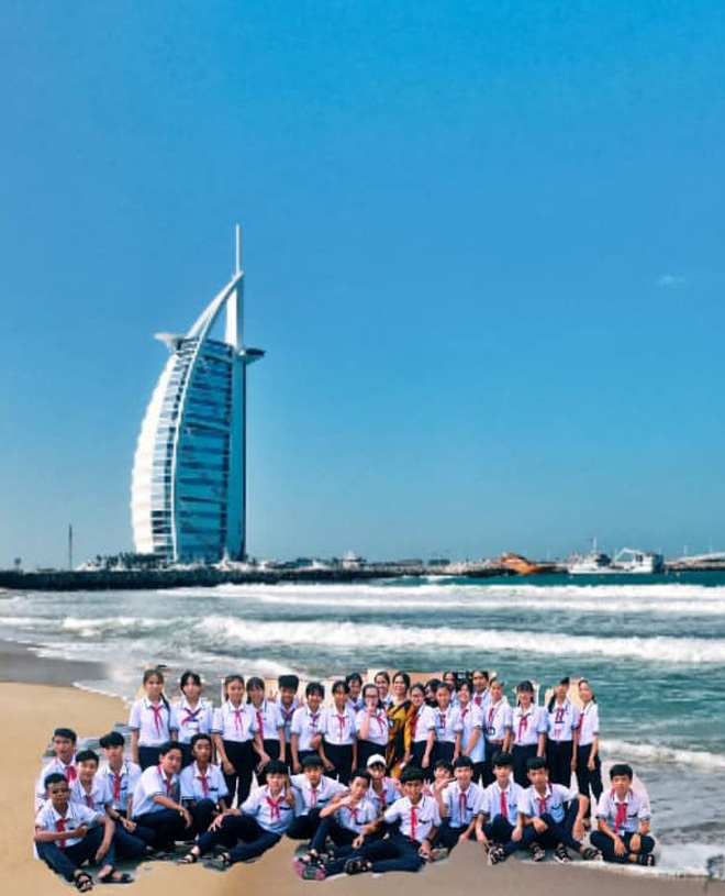 Chỉ đơn giản là những bức ảnh tập thể bình thường, các cô cậu nhà ta đã “hô biến” thành những bức ảnh check-in tại các nơi nổi tiếng chỉ trong vòng một nốt nhạc. Từ Paris, Trung Quốc cho đến Đà Lạt mộng mơ, tất cả đều trở nên chân thực thông qua bàn tay của các cô cậu học trò.