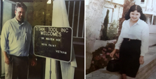 Bà Hòe từng đi Mỹ với chỉ 500 đôla năm 2000 để học hỏi công nghệ và hợp tác về sơn. Trong ảnh, tập đoàn Titan Tool của Mỹ mời bà Hòe chia sẻ những thành quả nghiên cứu của mình. Ảnh: NVCC.