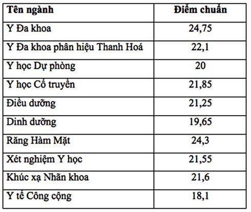 Điểm chuẩn của ĐH Y Hà Nội