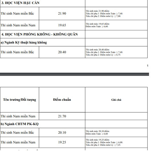 Cụ thể là vào năm 2017, điểm chuẩn ở khối D01, đối với nữ dự thi ngành Ngôn ngữ Anh, Học viện An ninh Nhân dân lên tới 20,5 nhưng năm nay đã hạ xuống chỉ còn 26,1 điểm. Ở khối quân sự, hai trường có điểm chuẩn 30 trong năm 2017, năm nay có số điểm tương ứng là 25,1 (Học viện Kỹ thuật Quân sự ) và 26,35 điểm (Học viện Quân y).