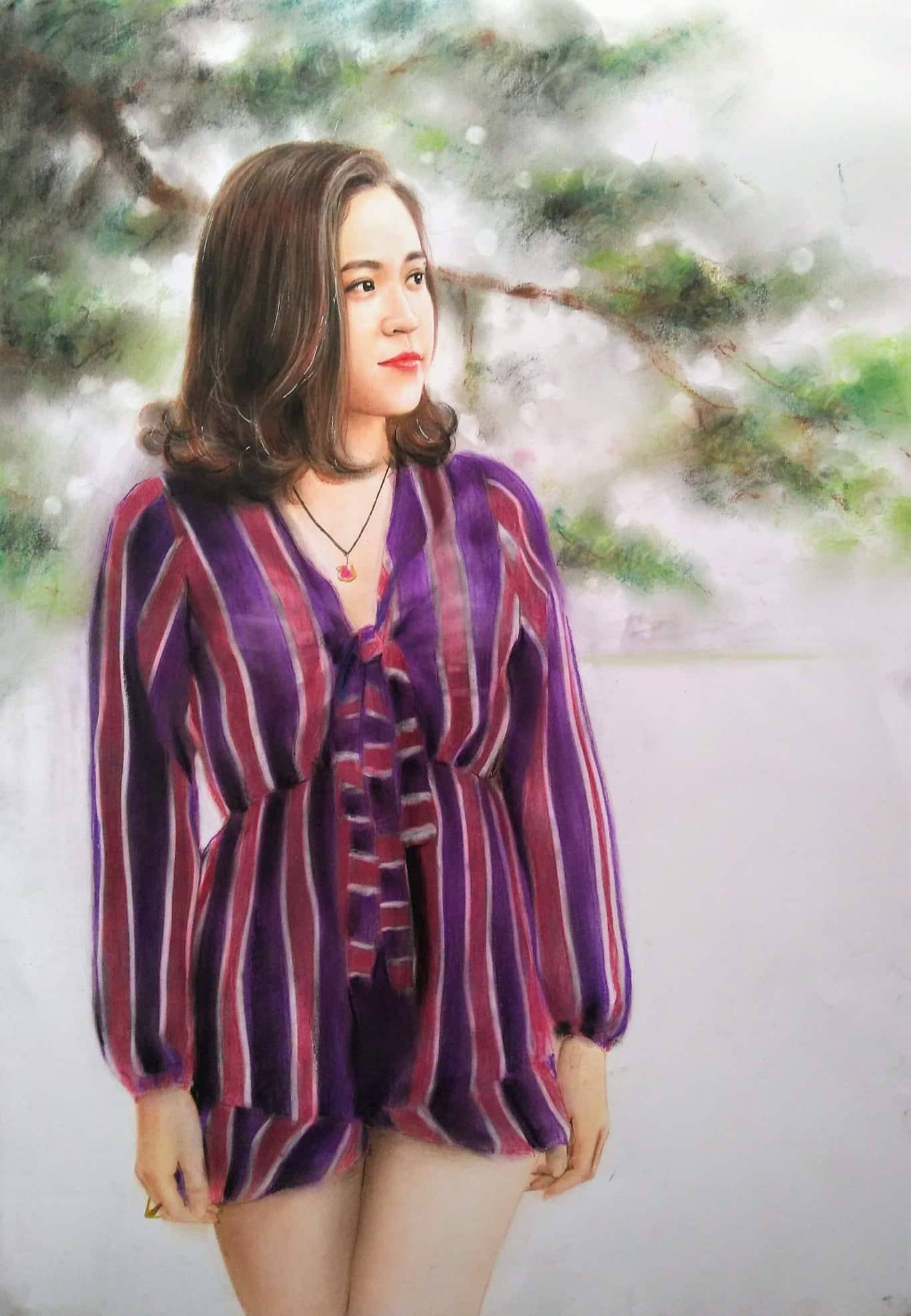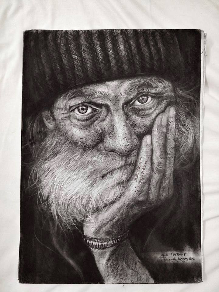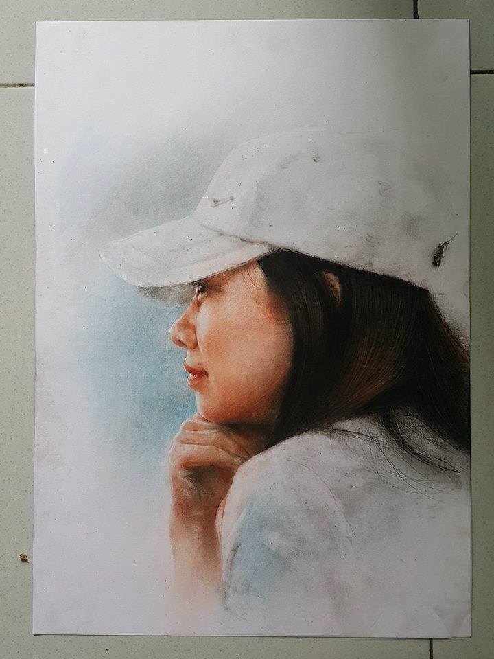 Thành chia sẻ: “Mình từ nhỏ đã thích vẽ, và mọi người nói là mình có năng khiếu vẽ từ bé nhưng phải lên đến Đại học mình mới đam mê vẽ tranh chân dung”.