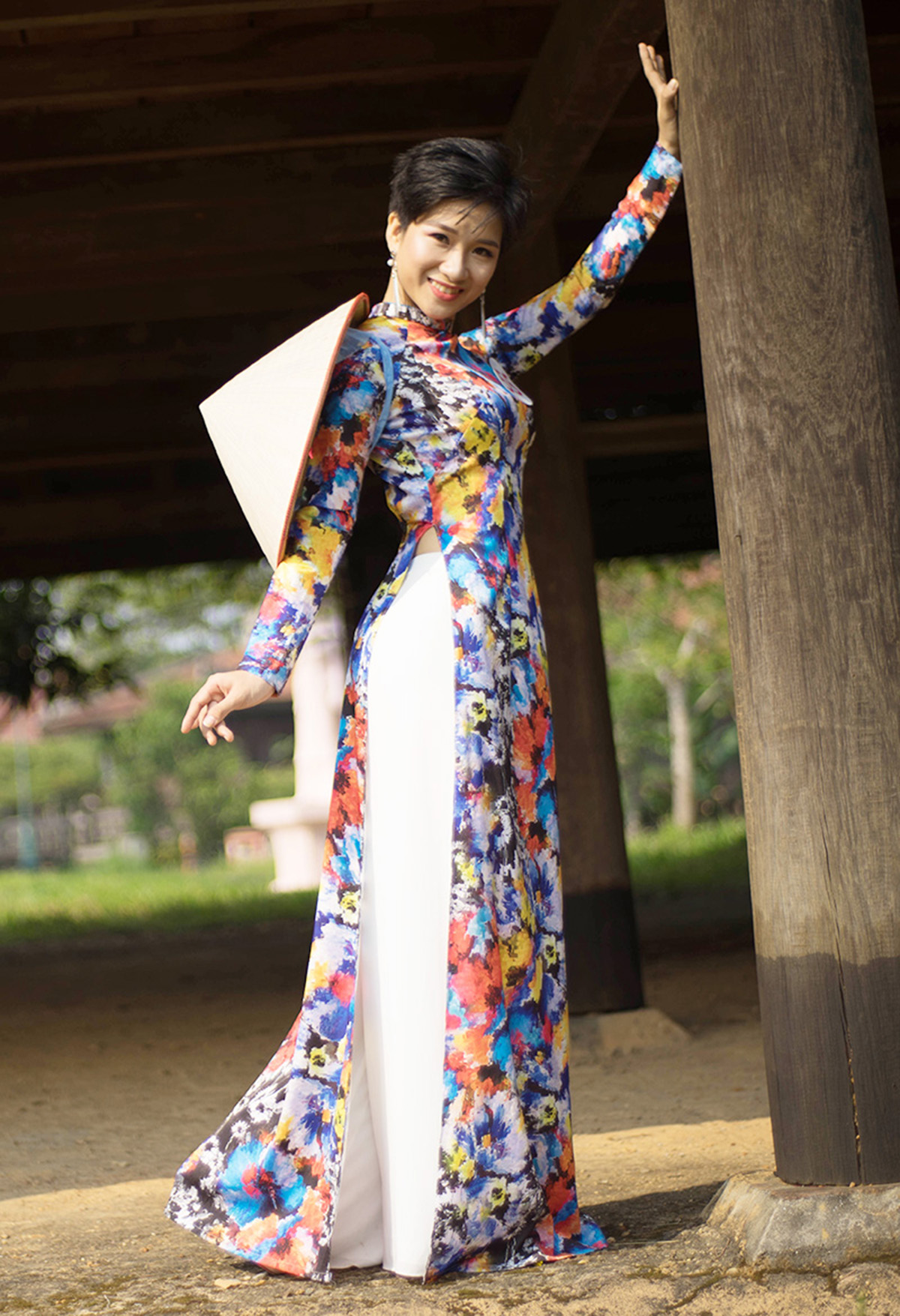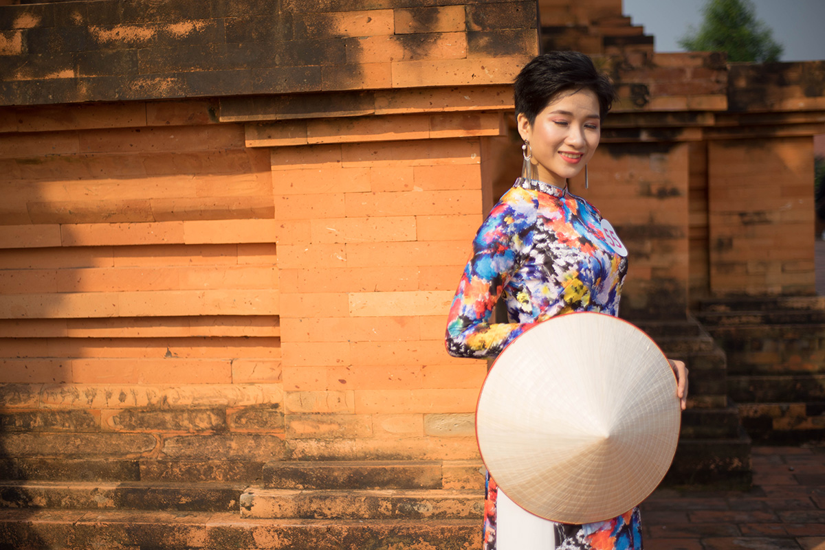 Mặc dù có ngoại hình cá tính, song Lan Anh vẫn rất duyên dáng khi sải bước trong trang phục truyền thống