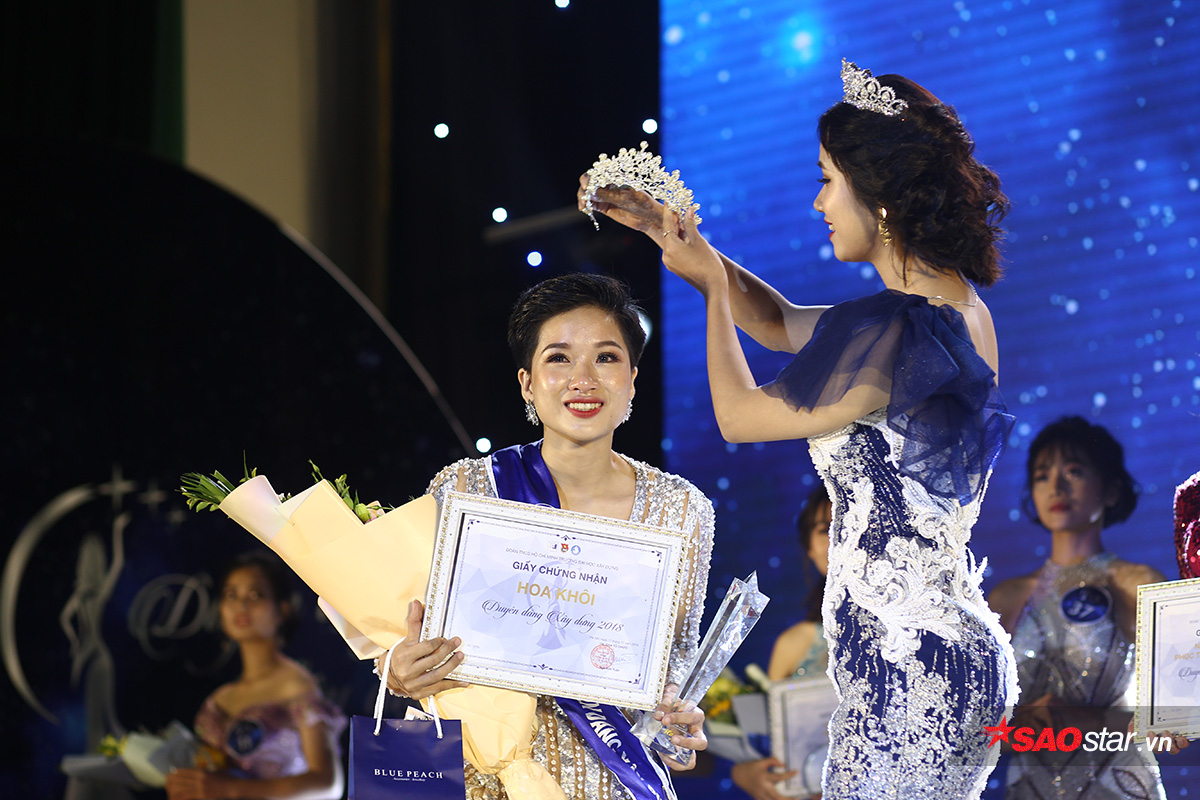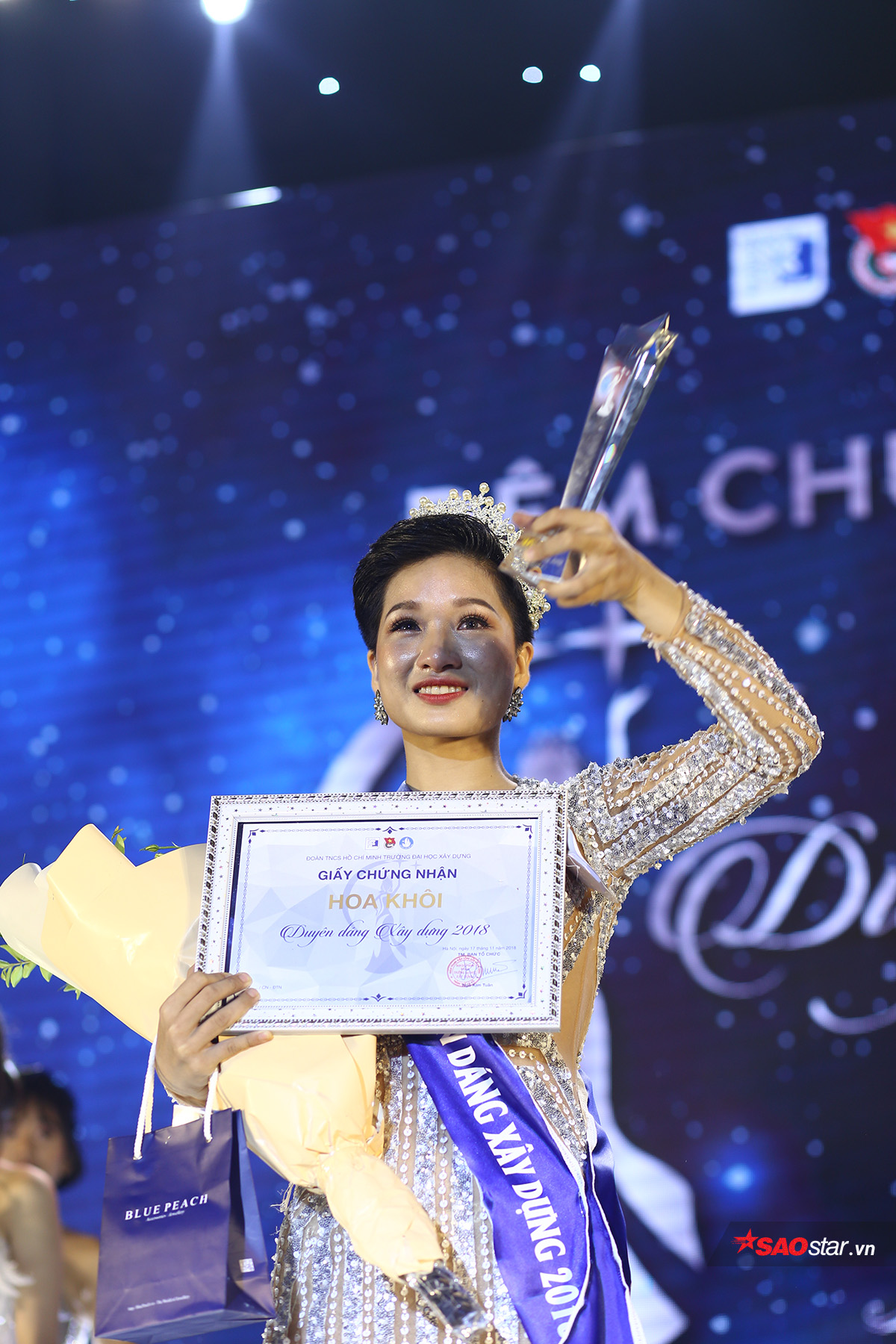 Vào khoảnh khắc nhận vương miện Hoa khôi,Lan Anh đã rơi những giọt nước mắt hạnh phúc, khi nhớ về quá trình nỗ lực bền bỉ, tâm huyết, cố gắng của mình tại Duyên dáng Xây dựng 2018.