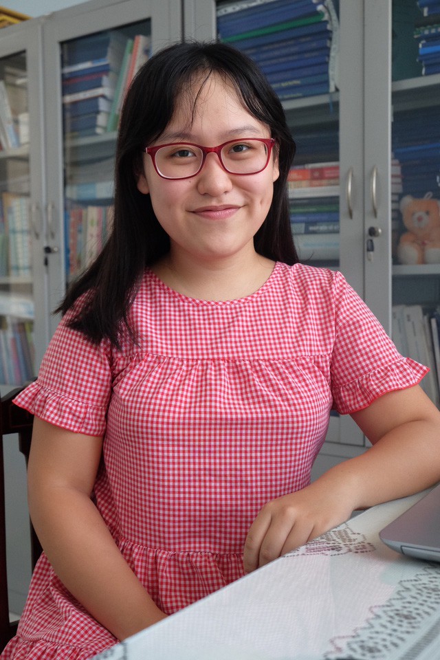 Cô bạn được mẹ dạy tiếng Anh từ nhỏ. Bên cạnh học từ trường, kinh nghiệm tham gia nhiều kỳ thi giúp nữ sinh hoàn thiện kỹ năng ngoại ngữ.