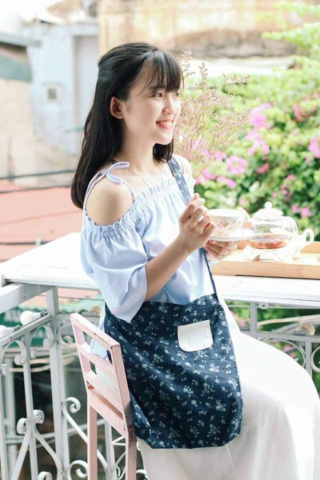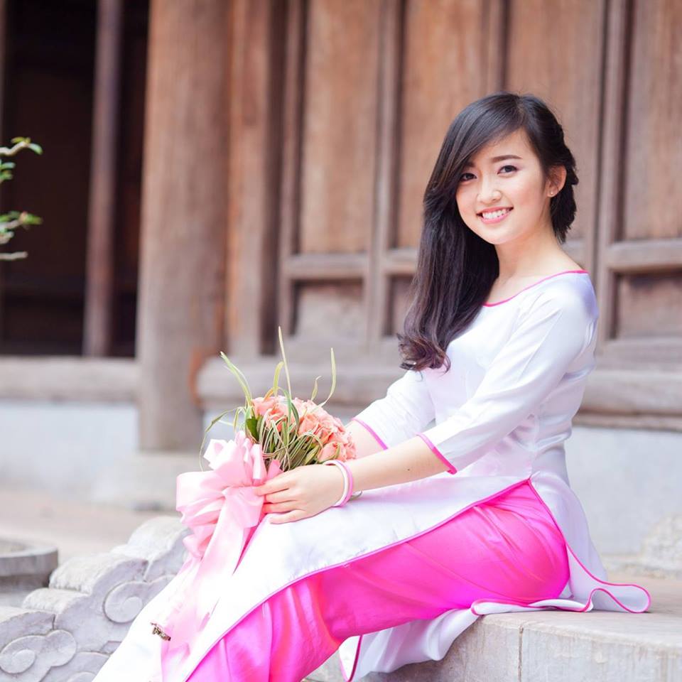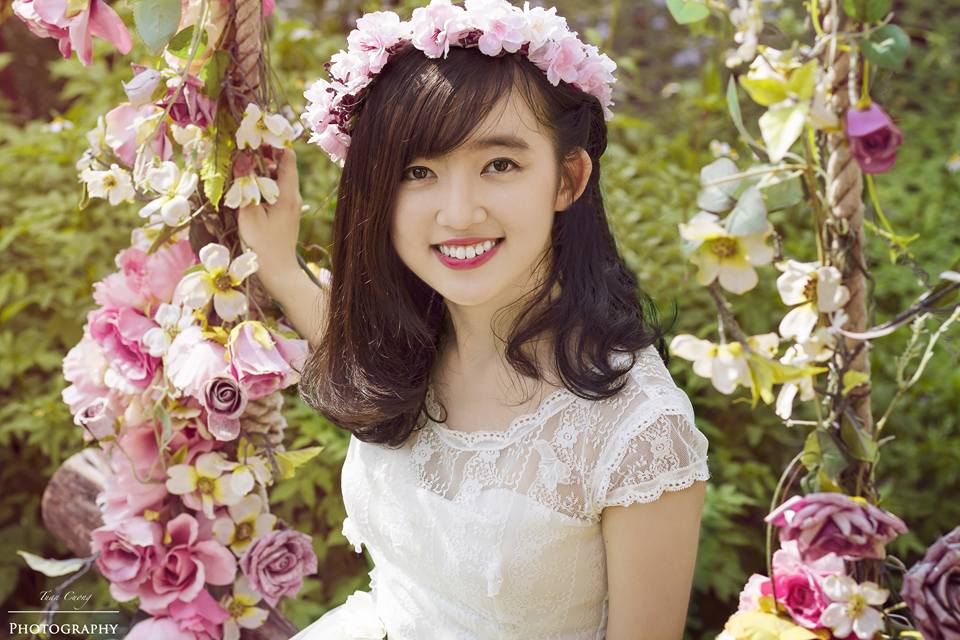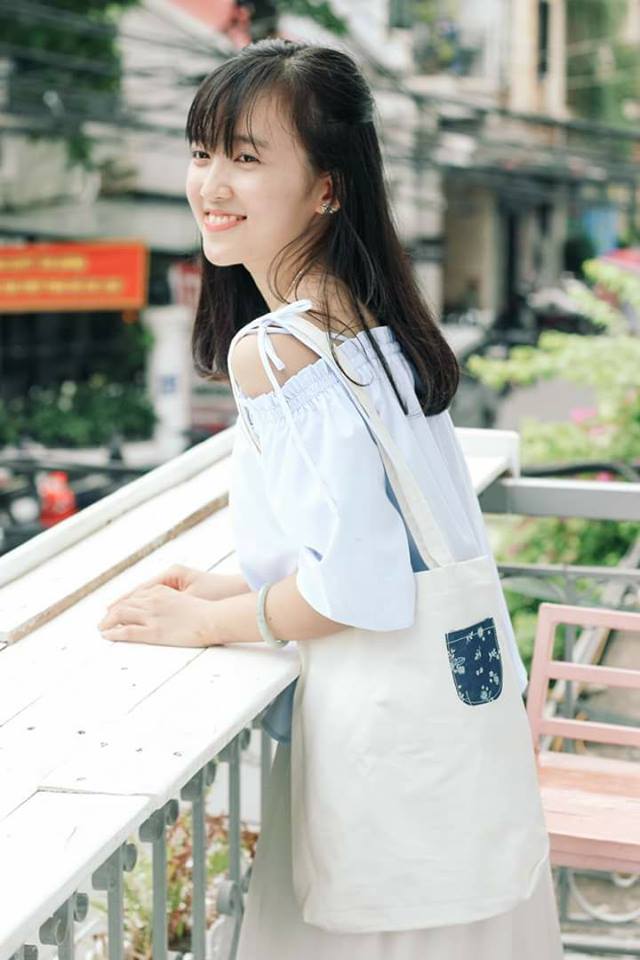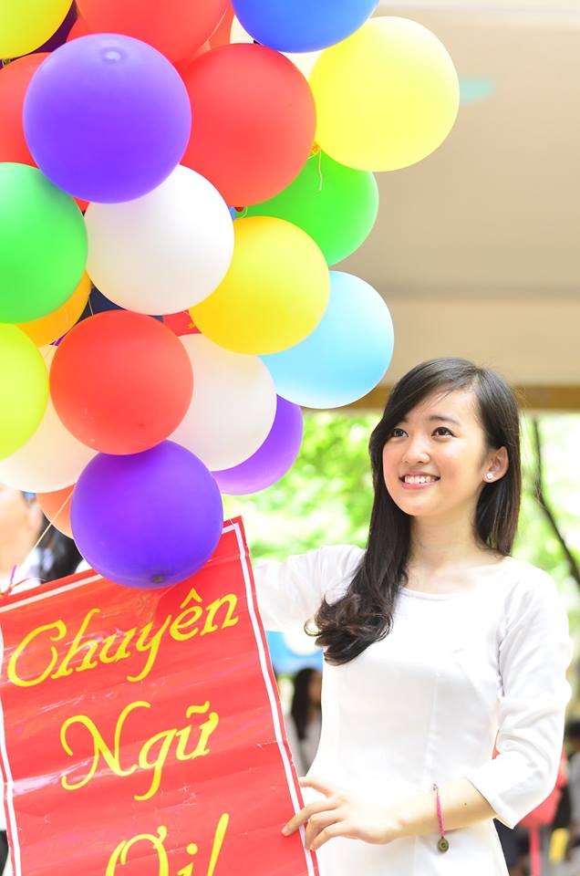 Cựu học sinh THPT Chuyên Ngoại ngữ có gương mặt rất xinh đẹp, nụ cười rạng rỡ.