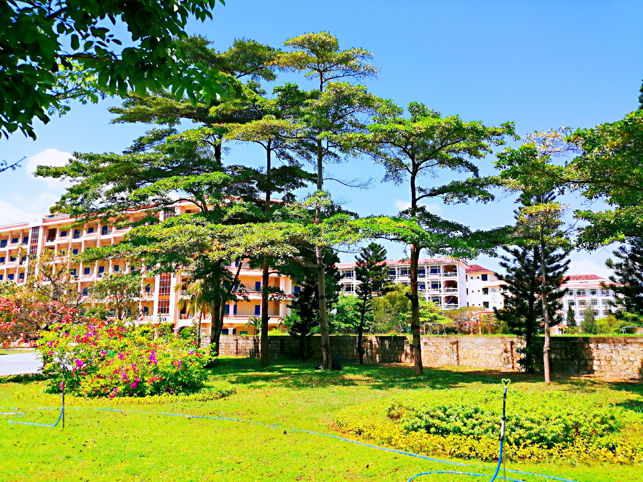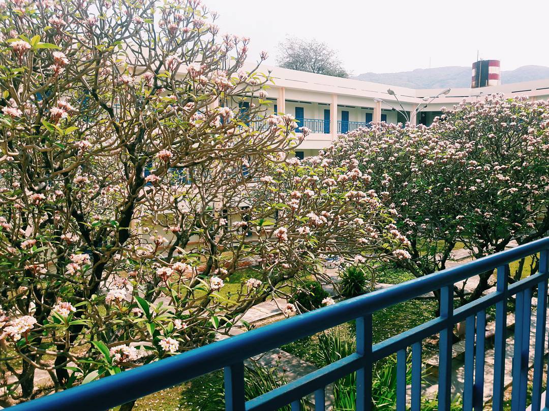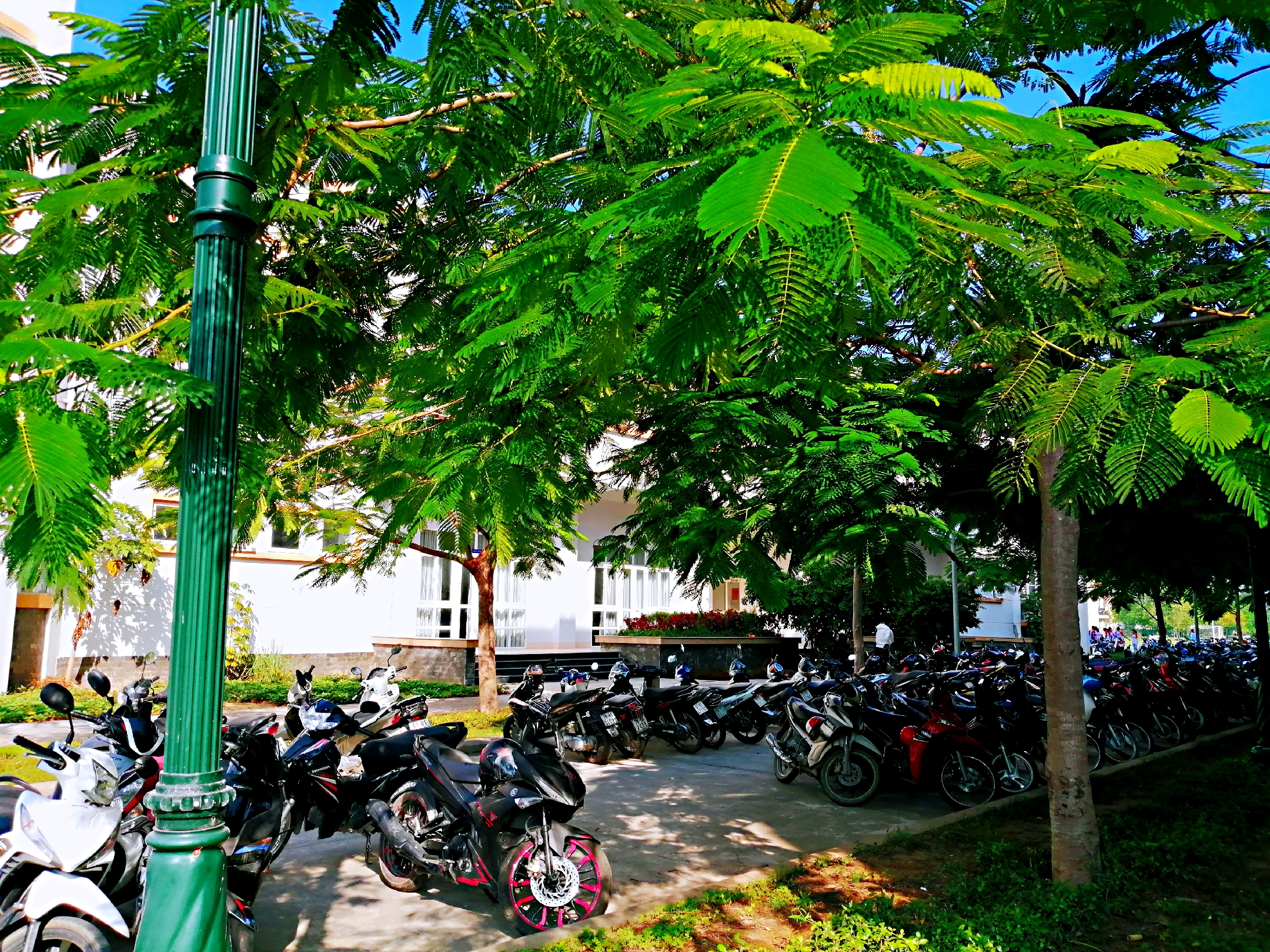 Nếu có cơ hội ghé thăm, ấn tượng ban đầu của bạn về trường sẽ là vẻ hiện đại với nhiều toà nhà cao tầng hướng mặt ra biển. Đi sâu vào bên trong sẽ là những hành lang luôn lát gạch sạch sẽ, luống hoa giấy, hoa sứ, me tây, bằng lăng… nên thơ, dịu dàng.