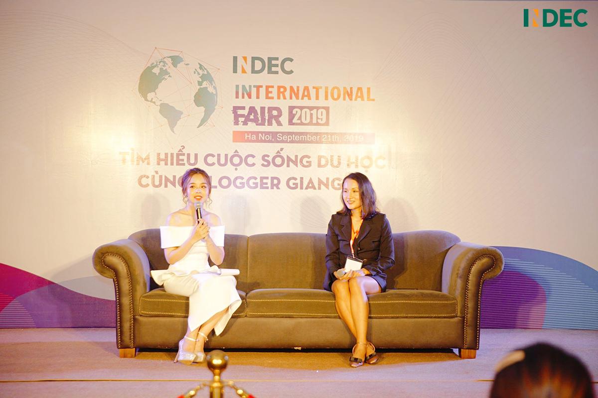 Một trong những phần “nóng” nhất, thu hút nhất và nhận được nhiều sự quan tâm nhất từ các bạn học sinh, sinh viên chính là workshop “Khám phá cuộc sống du học cùng Vlogger Giang ơi”. INDEC INTERNATIONAL FAIR 2019 đã mang đến cho các bạn tham dự chương trình cơ hội được gặp gỡ “thần tượng” của mình, chị Giang ơi - hot Vlogger với hơn 1 triệu người theo dõi, người truyền cảm hứng cho giới trẻ.