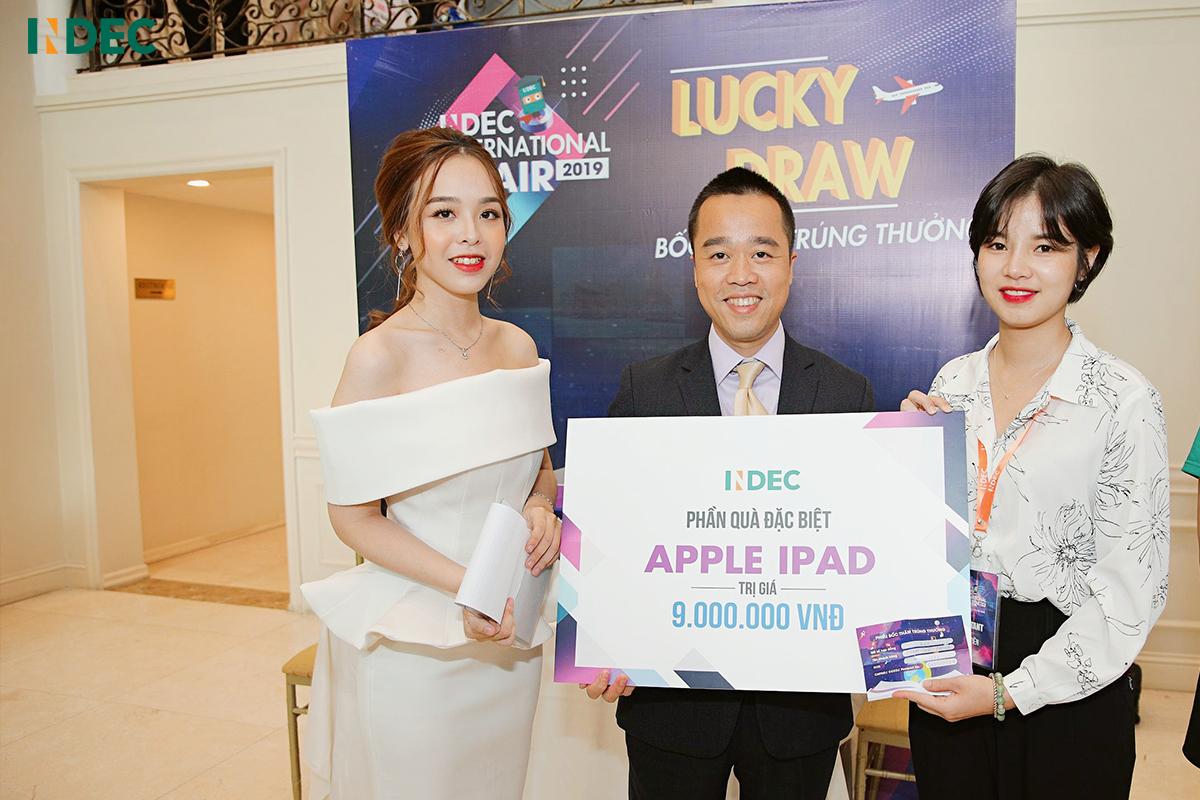 Phần cuối cùng những cũng chính là một trong những phần được mong chờ nhất chính là phần bốc thăm trúng thưởng với kho quà tặng khổng lồ từ INDEC lên tới 500 triệu đồng. Chủ nhân của những phần quà giá trị bao gồm 1 Ipad và 3 Apple Watch được gọi tên. Những món quà cũng chính là lời chúc may mắn, thành công của INDEC gửi tới các bạn học sinh, sinh viên trong hành trình du học sắp tới.