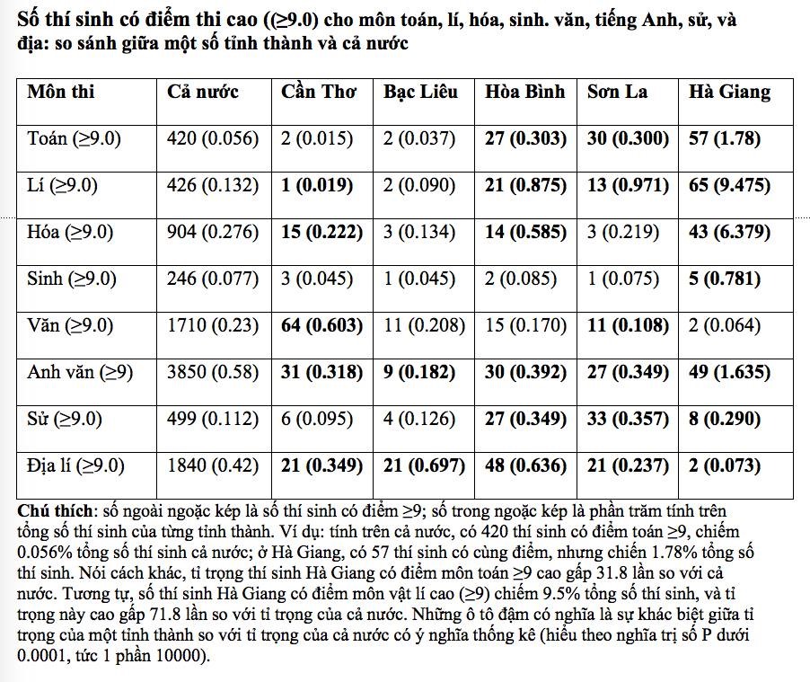 Phân tích về điểm thi ở Hòa Bình, trên báo VTC News thời điểm đó, Chủ tịch Hội đồng Quản trị Đại học FPT Lê Trường Tùng đã chỉ ra nhiều dấu hiệu bất thường trong điểm thi ở Hòa Bình. Cụ thể, ở khối A, Hòa Bình có nhiều thí sinh đạt điểm cao với mức chung toàn quốc. Ở các khối khác, điều tương tự của xảy ra. Số thí sinh đạt từ 27 điểm trở lên của Hà Giang, Sơn La, Hòa Bình chiếm 35% cả nước.