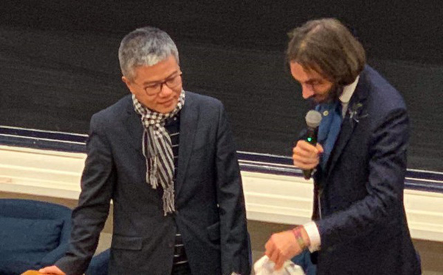 GS. Ngô Bảo Châu và Chủ tịch hội đồng trao giải Cédric Villani. Ảnh Viện nghiên cứu cao cấp về Toán.