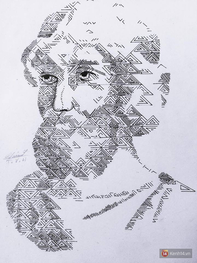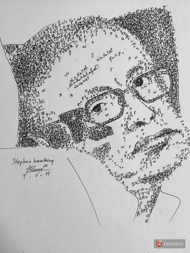 Ngoài hai bức ảnh được đăng tải trên Facebook, Huân cũng chia sẻ thêm những bức tranh vẽ các nhà khoa học nổi tiếng bằng công thức Toán học cùng các hình khối không kém phần sinh động.