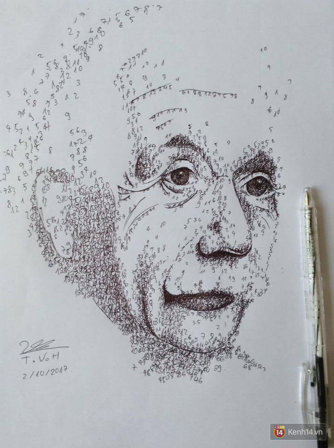 Chủ nhân của các bức hinh này là Trần Văn Huân, học sinh lớp 11, trường THPT Tuệ Tĩnh, tỉnh Hải Dương. Huân được các bạn biết đến với khả năng hội họa cực đỉnh và rất thích vẽ những tác phẩm “có một không hai”
