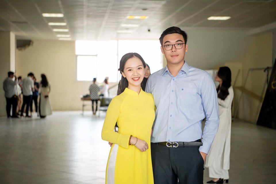 Hà Anh chụp ảnh kỷ niệm cùng Dương Hiểu Phong - hotboy trường Luật đình đám.