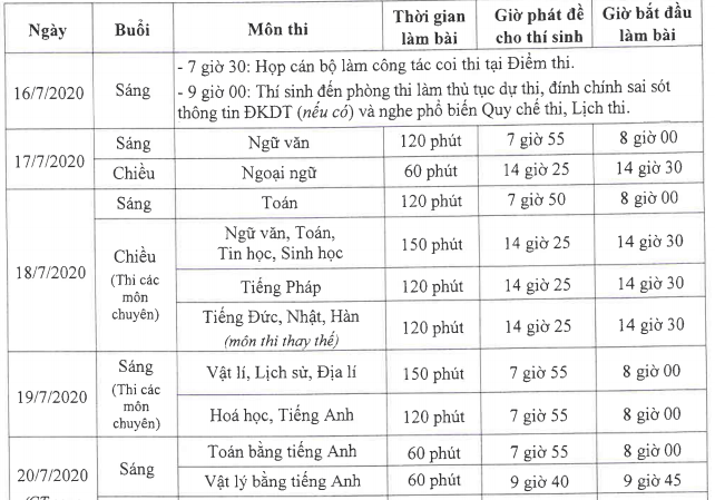 Lịch thi vào lớp 10 Hà Nội cụ thể.