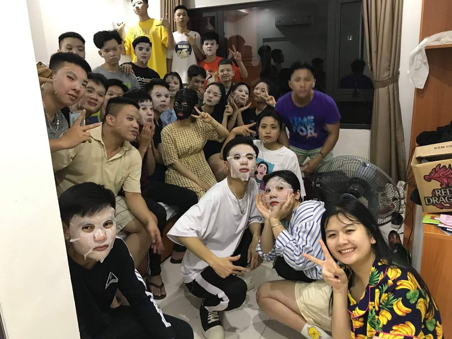 Cả lớp cùng đắp mặt nạ vừa làm đẹp vừa gắn kết tinh thần đồng đội. Ảnh: FB Uyên Hồng Uyên.