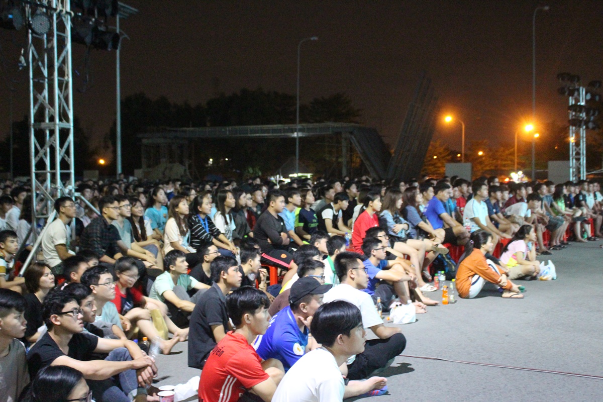 Dù đã được bố trí rất nhiều ghế ngồi cùng hệ thống ánh sáng tiện nghi, tuy nhiên số lượng cổ động viên quá đông dẫn đến tình trạng nhiều bạn phải đứng xem hoặc ngồi bệt xuống cỏ. Nhiều bạn chọn ngồi trên những chiếc máy tập thể dục bên cạnh, vừa tập thể dục, vừa xem bóng đá.