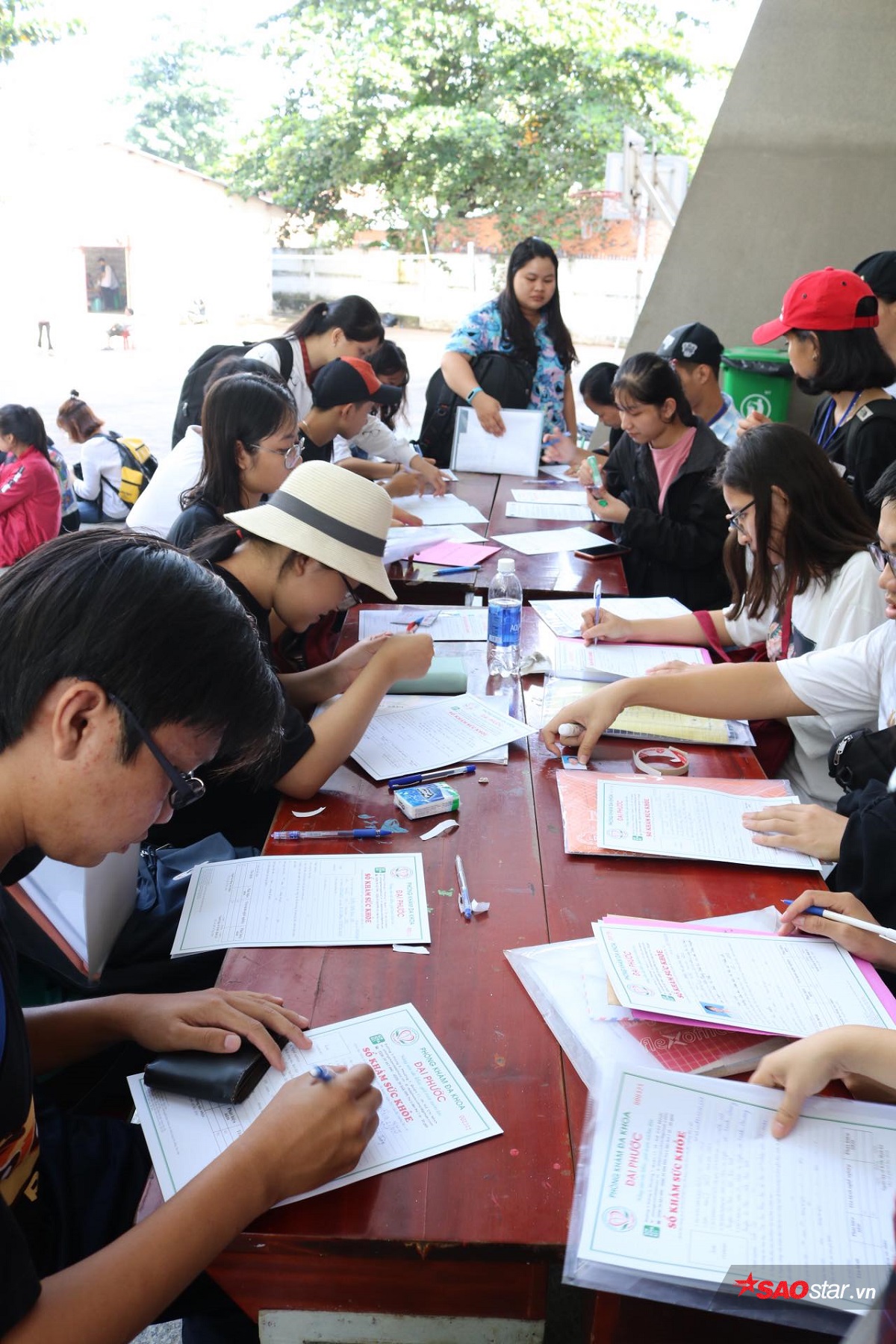 Các thí sinh ghi thông tin khám sức khỏe đầu năm học.