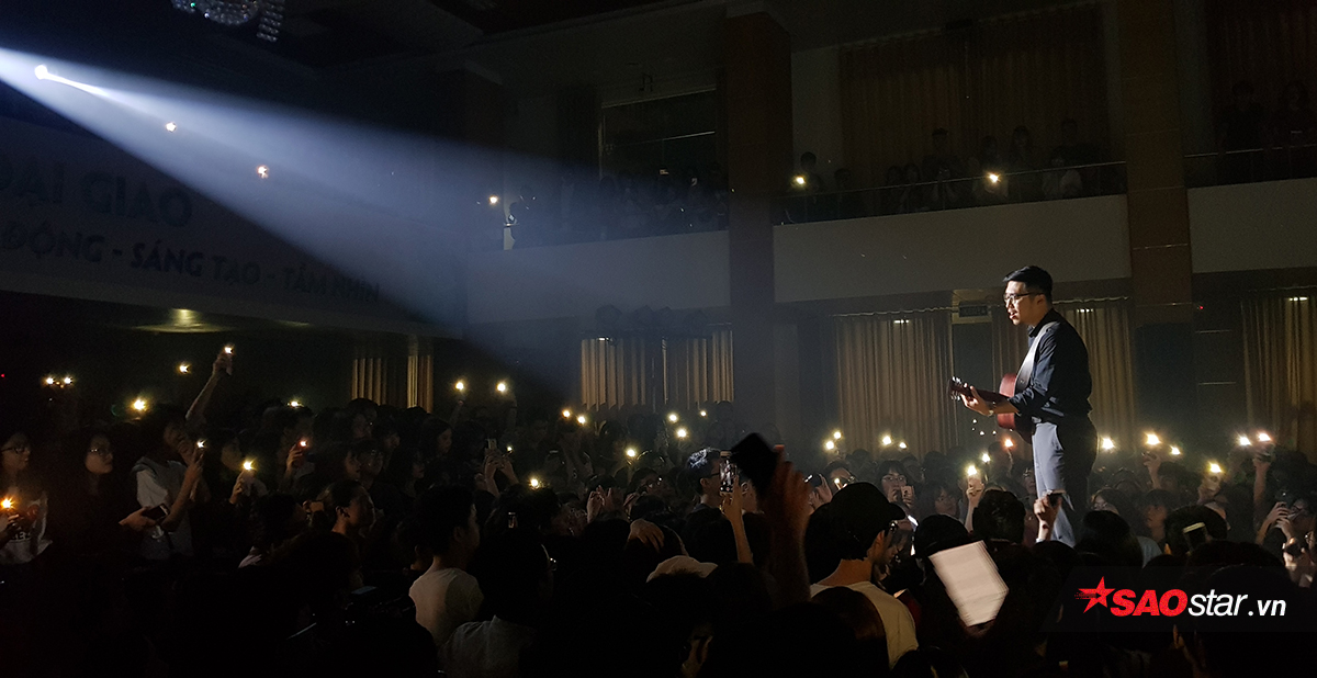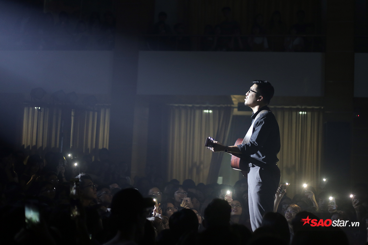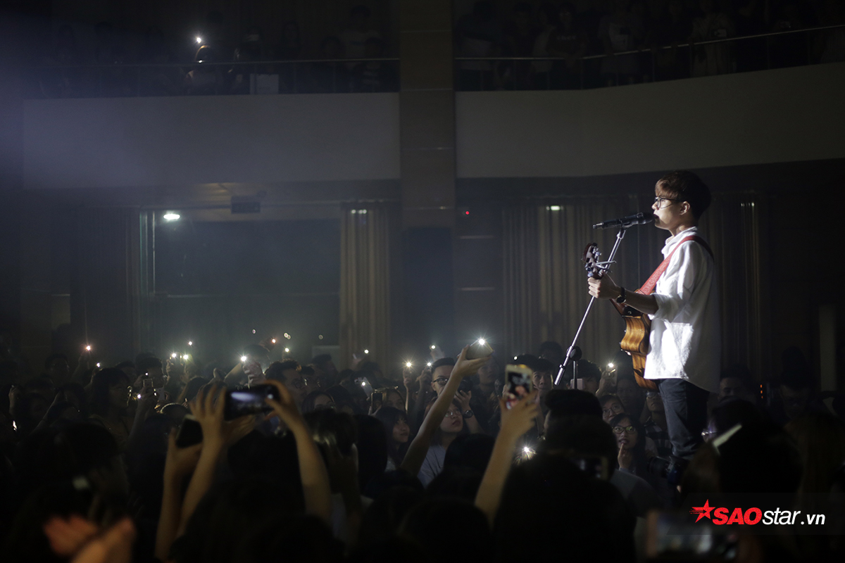 Đông đảo khán giả bật đèn flash, tạo nên một khung cảnh huyền ảo, lãng mạn trong không gian âm nhạc của Vũ.