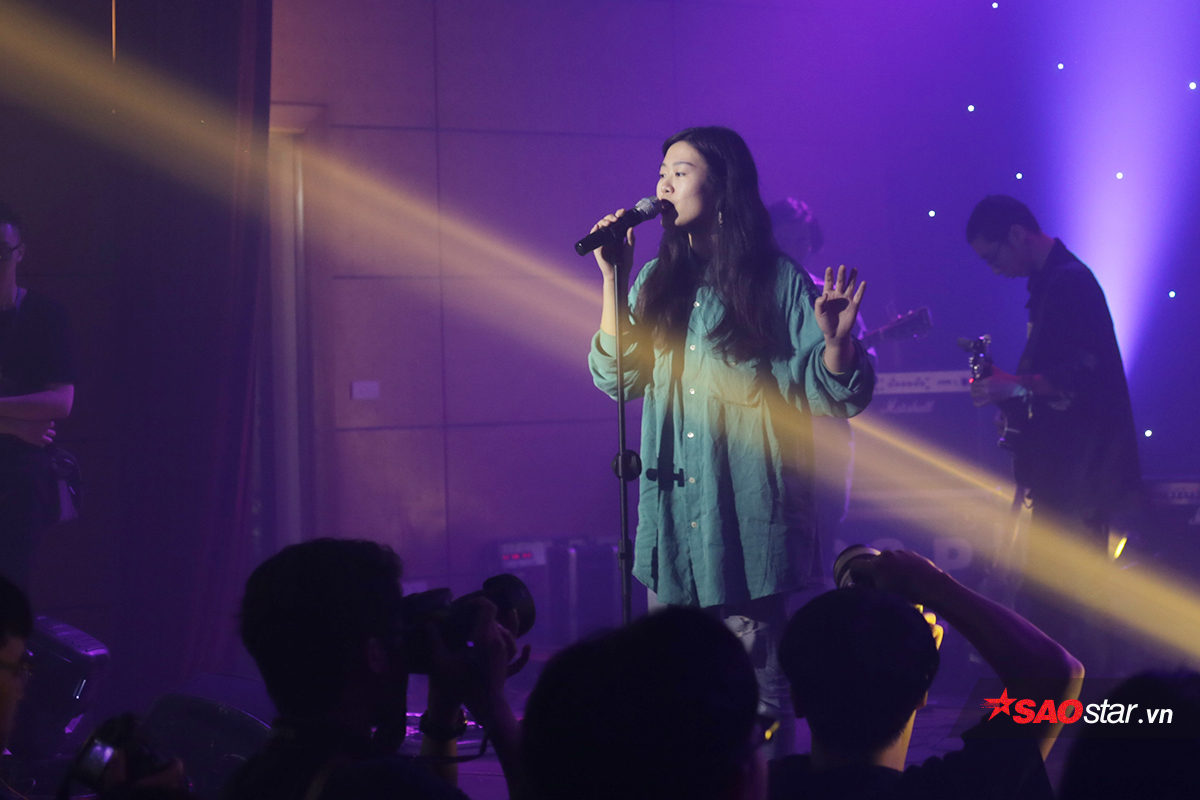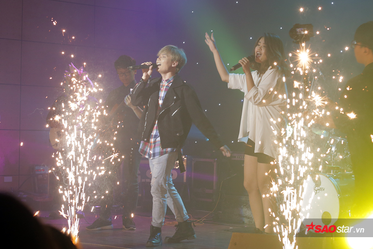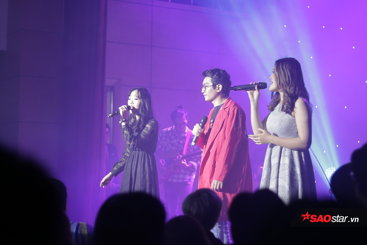 Dưới sân khấu, khán giả cũng tập trung chật kín, không ít bạn sinh viên còn thả mình “quẩy” tưng bừng giữa hội trường lớn để cổ vũ cho các nghệ sĩ trên sân khấu.