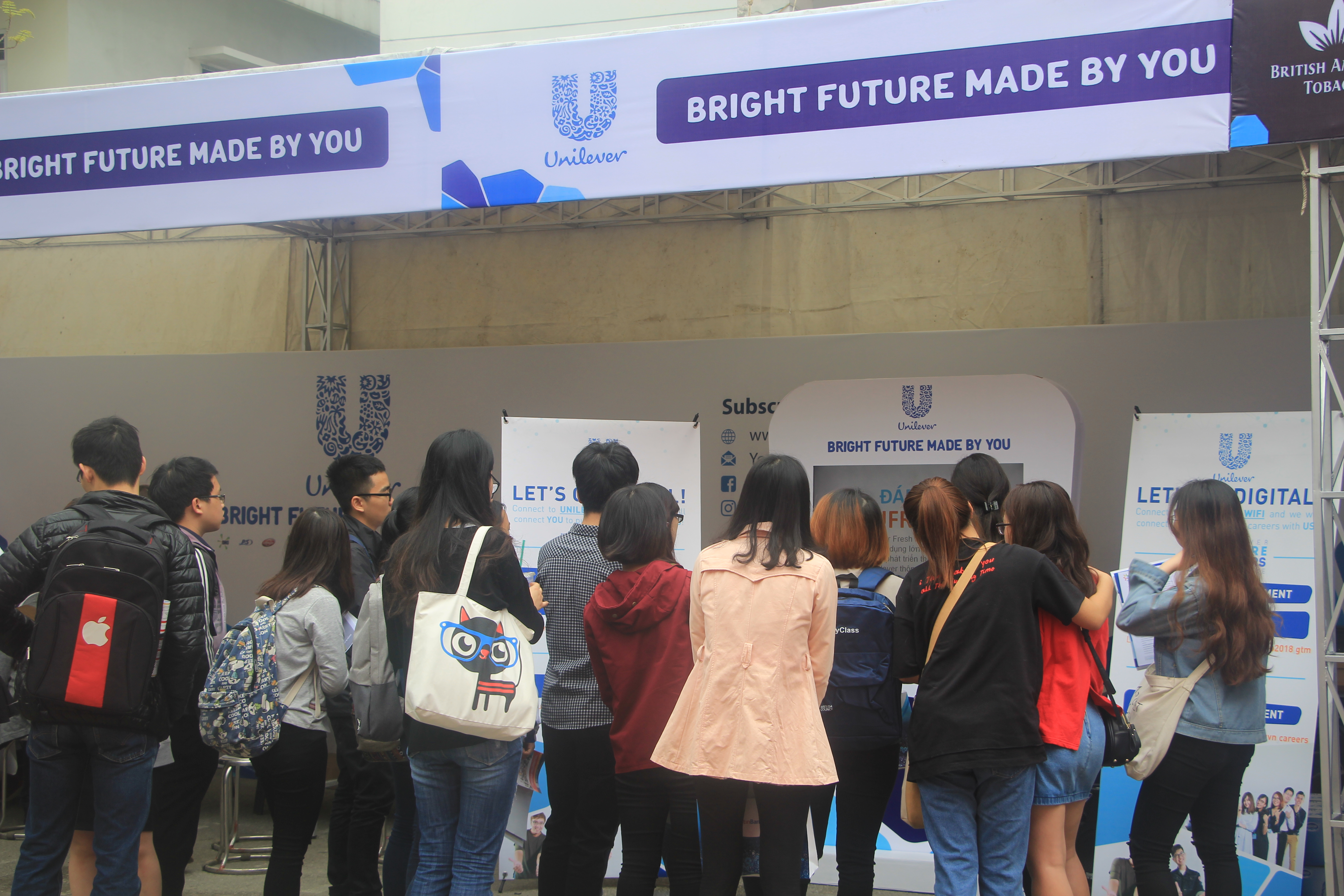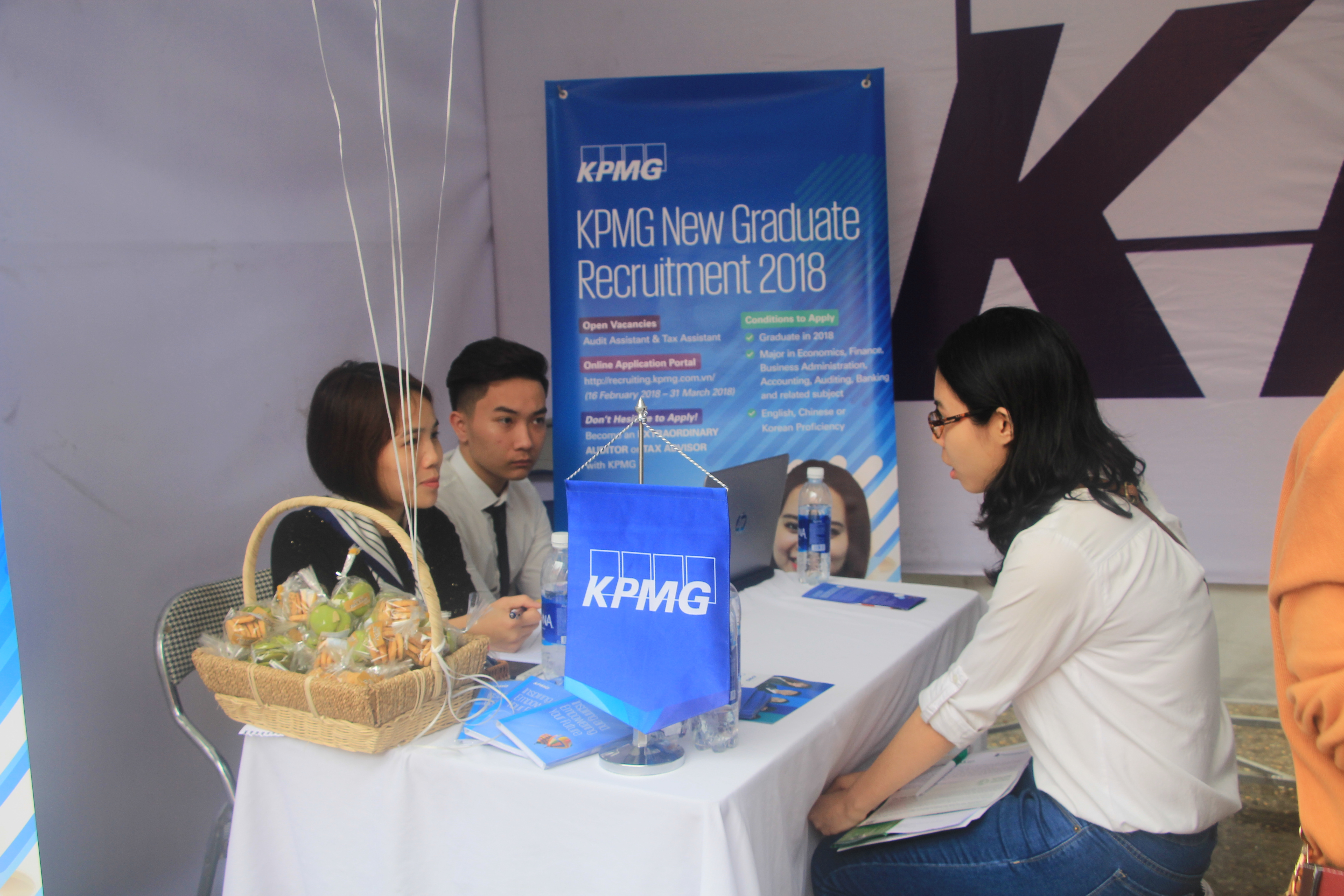 Ngày hội quy tụ gần 30 doanh nghiệp lớn và có uy tín trong lĩnh vực kinh tế đến để tư vấn, hướng nghiệp cho sinh viên chuẩn bị ra trường.