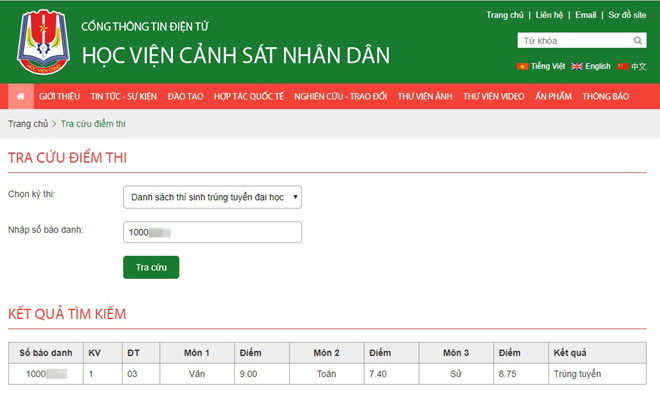 Với tổ hợp và đối tượng xét tuyển như trên, điểm chuẩn của Học viện Cảnh sát Nhân dân là 24,15 điểm, tiêu chí phụ là tổng điểm 3 môn đạt 21,4 và môn Ngữ văn đạt 7,75 điểm.