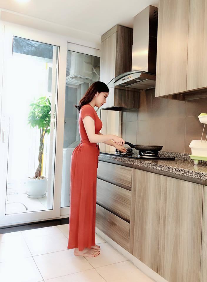 Thủy Tiên khoe ảnh nấu ăn trong căn hộ cao cấp.