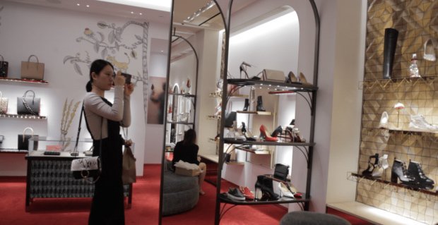 Một nữ sinh viên Trung Quốc đang chụp hình ở cửa hàng của Louboutin