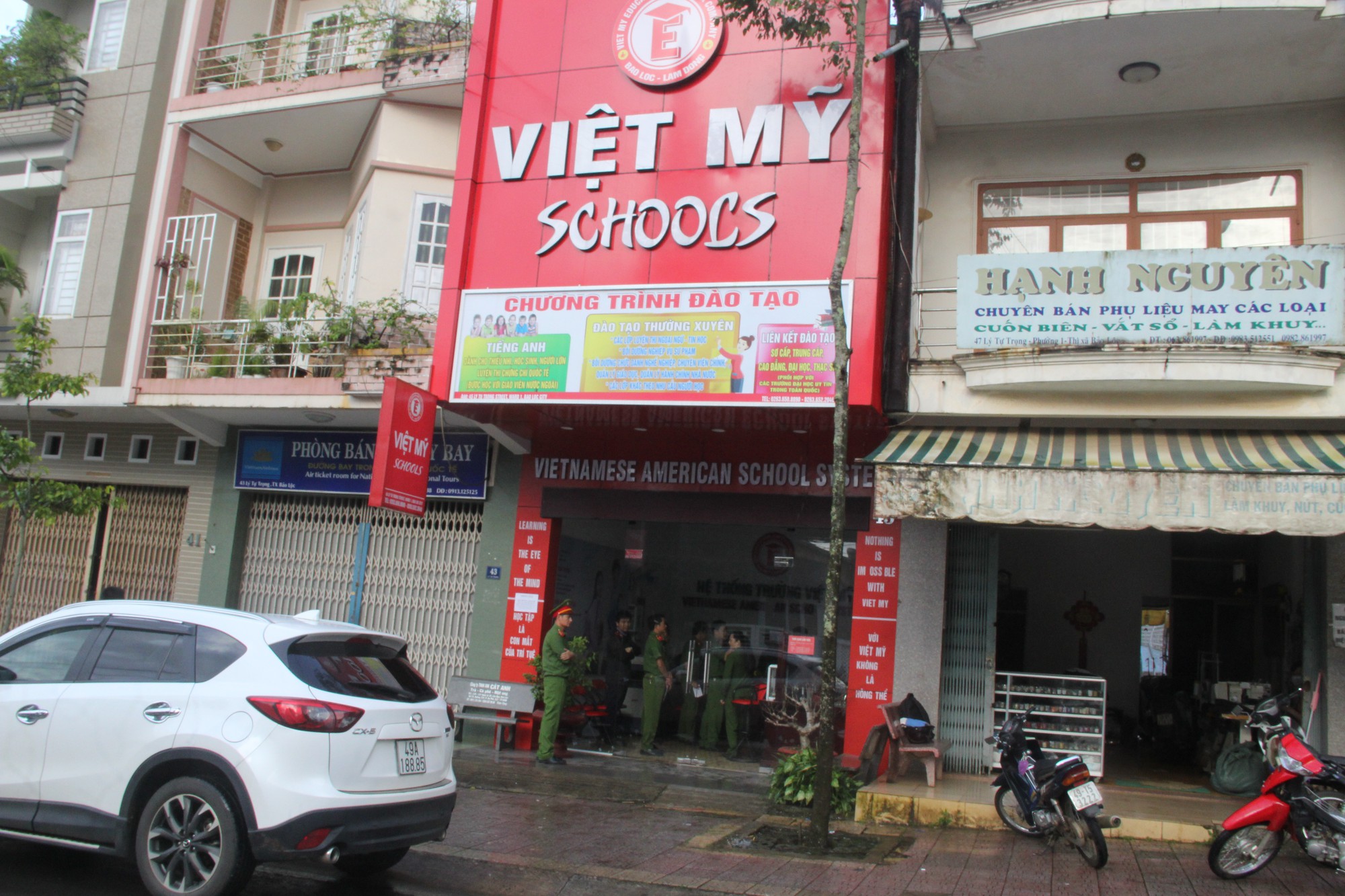 Chiều 16/8, công an TP Bảo Lộc tiến hành khám xét trụ sở trường CĐ Việt Mỹ, bắt tạm giam hiệu trưởng tự phong Hoàng Ngọc Duy. Ảnh: Quân Bảo.