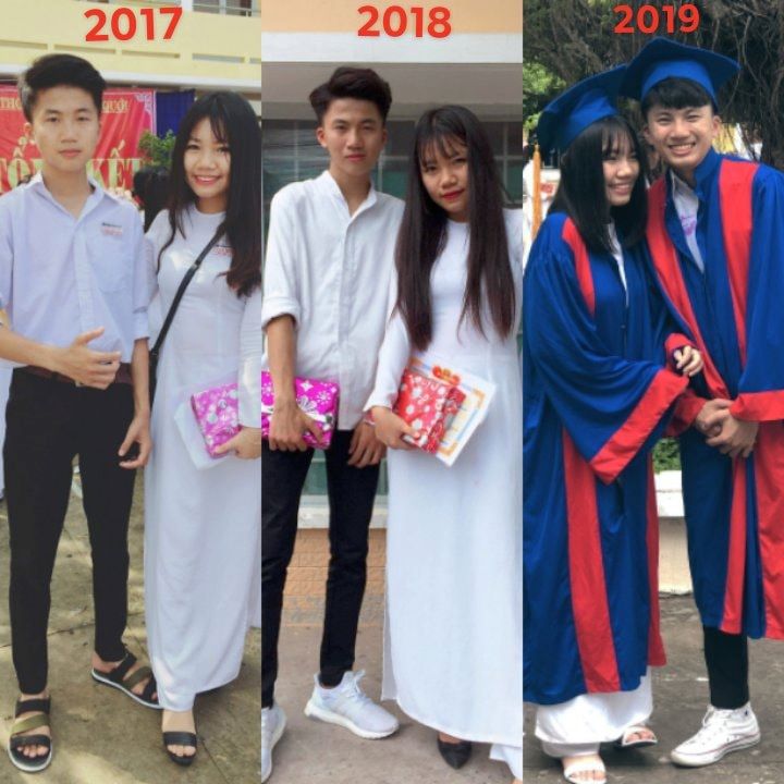 Qua 3 bức ảnh trong 3 năm được đặt cạnh nhau, từ ngày khoác lên mình tà áo dài trắng, dự lễ tổng kết đầu tiên đến giây phút rạng rỡ trong màu áo cử nhân, ai cũng đều thấy rõ từng bước trưởng thành của đôi bạn này cũng như tình bạn bền chặt, gắn bó của cả hai.
