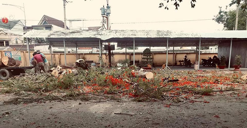Bên cạnh đó, một số cư dân mạng cũng đã chia sẻ hình ảnh cây phượng trường mình cùng rơi vào cảnh ngộ tương tự:
