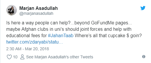 Trả lời trước truyền thông báo chí, Jahan nói rằng cô lo ngại không đủ khả năng để chi trả học trả học phí.