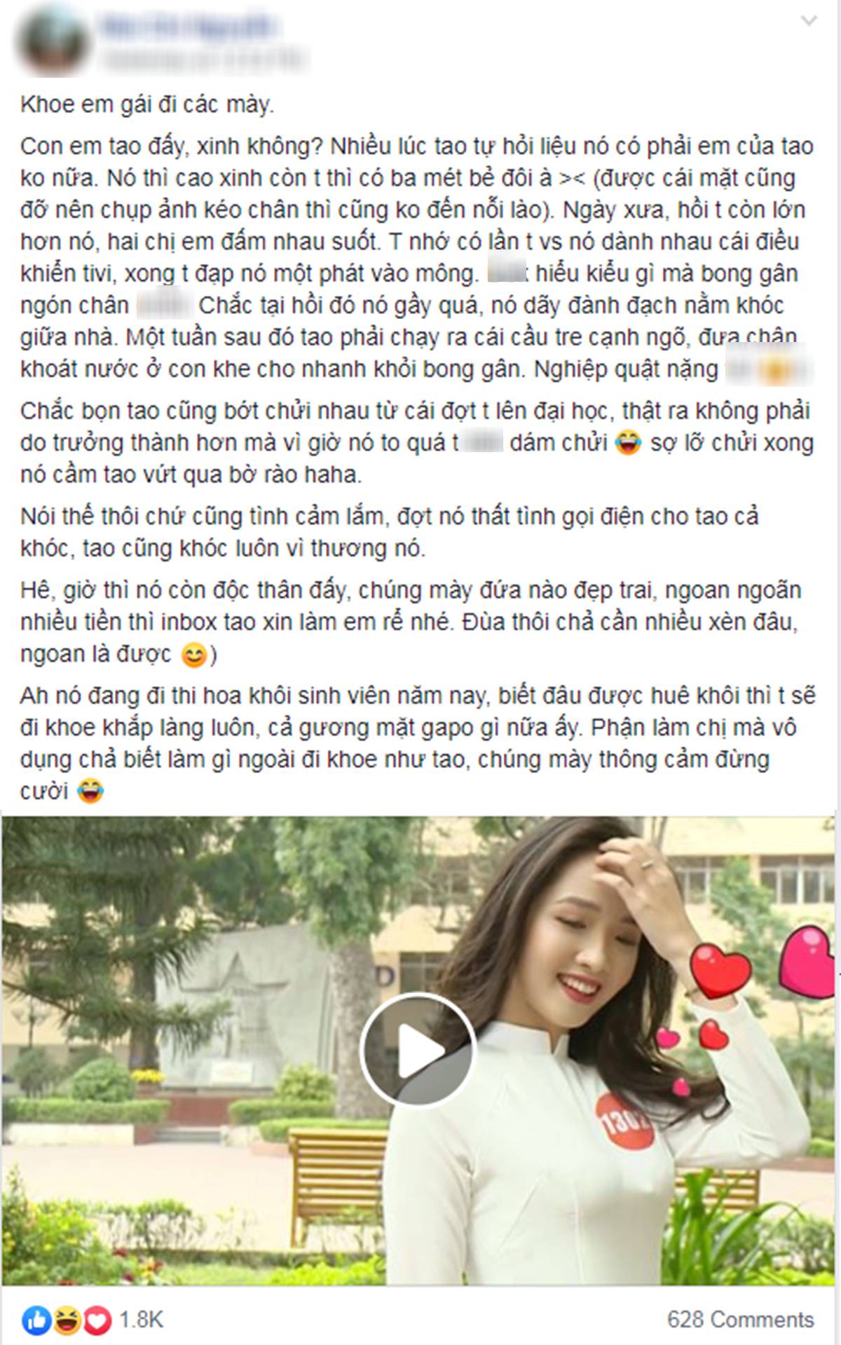 Chị gái của Khánh Ly, Nguyễn Mai Chi đã chia sẻ những dòng tâm sự của mình về Khánh Ly, theo đó, trong mắt chị, hoa khôi là một cô em, xinh đẹp, nghịch ngợm nhưng rất giàu tình cảm.