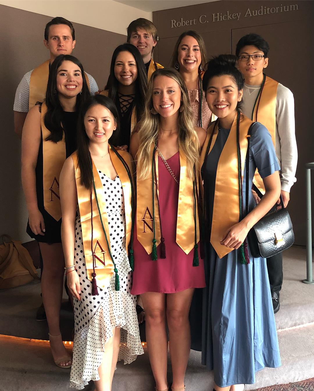 Cô lựa chọn áo dài để mặc trong lễ tốt nghiệp, mang hình ảnh đẹp của con gái Việt Nam đến với đông đảo bạn bè quốc tế