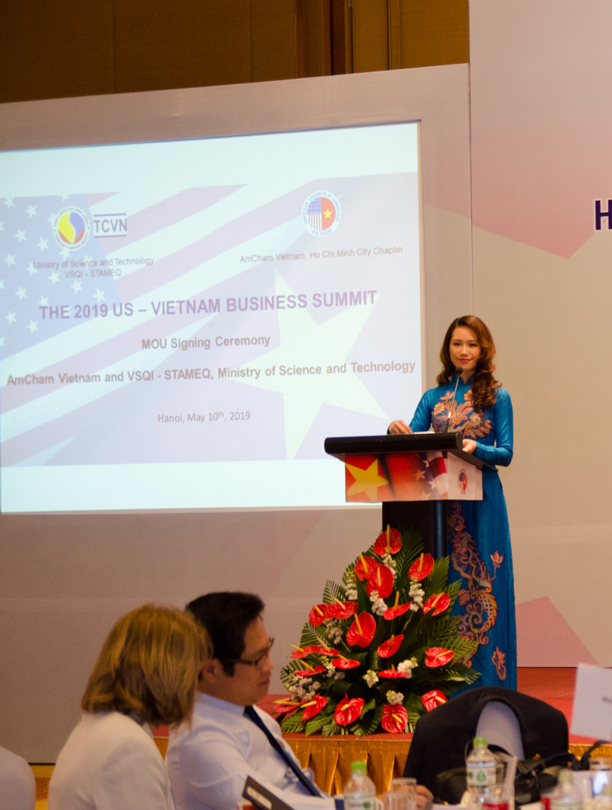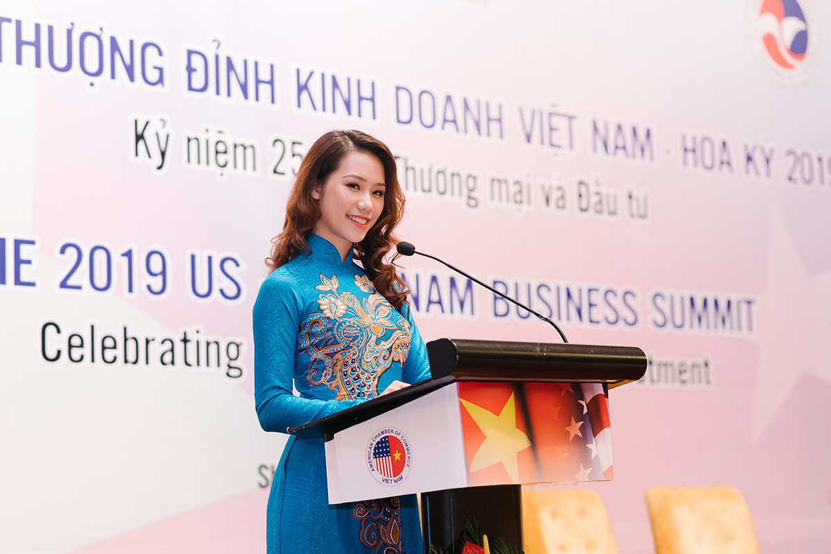 Tại sự kiện Hội nghị thượng đỉnh Kinh doanh Mỹ - Việt, Ngân Hà dẫn toàn bộ chương trình bằng tiếng Anh. Cô chia sẻ: “Khi được mời làm MC, mình cảm thấy vinh dự, cũng có chút áp lực vì đây là Hội nghị rất quan trọng để xúc tiến Thương mại giữa Việt Nam và Hoa Kỳ. Mình cũng hiểu trọng trách của mình không chỉ là điều phối chương trình Hội nghị hôm ấy mà còn mang đến hình ảnh một nước Việt Nam tiềm năng, hội nhập và sẵn sàng hợp tác với cường quốc thế giới. Bởi vậy, mình đã chuẩn bị rất kỹ lưỡng cho Hội nghị hôm đó: từ nội dung dẫn, kiến thức tiếng anh chuyên ngành đến trang phục và phong thái ứng xử. Mình muốn xuất hiện với hình ảnh chỉn chu nhất có thể để tạo được ấn tượng tốt với Doanh nghiệp, Chính phủ Hoa Kỳ về người trẻ Việt Nam”.