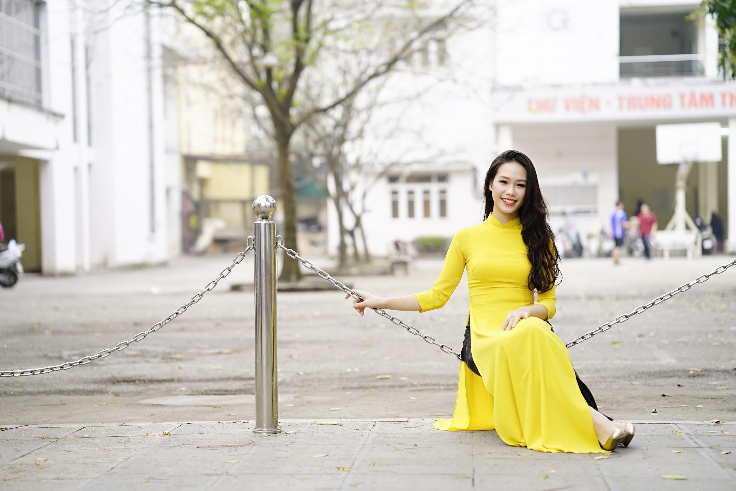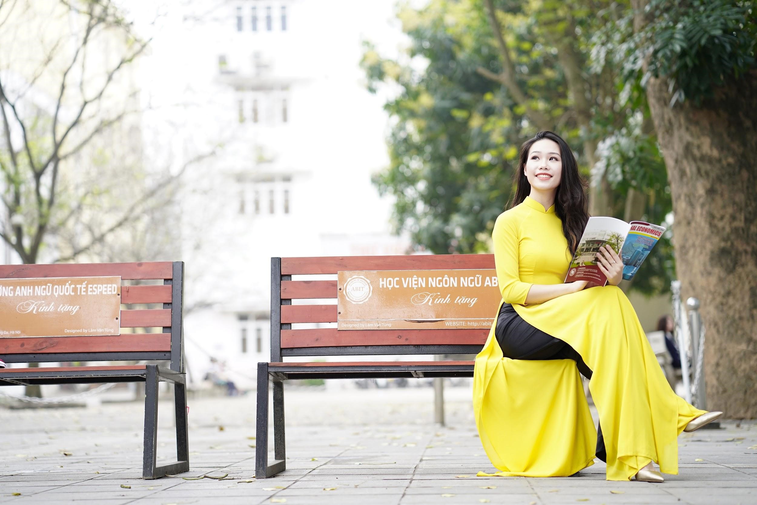 Hoa khôi Ngoại thương diện áo dài nền nã, mang vẻ đẹp Việt đến với bạn bè thế giới.
