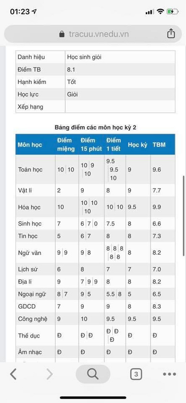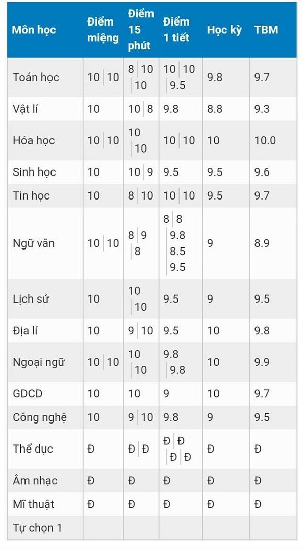 Nể phục nhất có lẽ là cậu bạn này, khi điểm Hóa chỉ toàn là số 10.