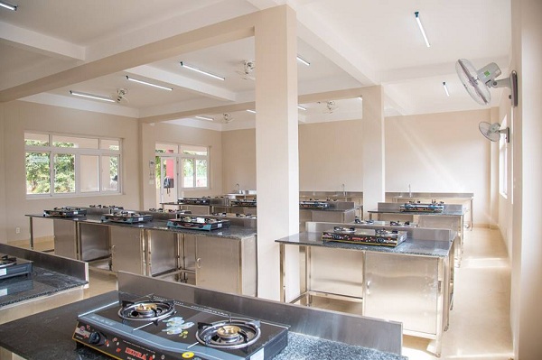 Lớp học nấu ăn đầy đủ dụng cụ.